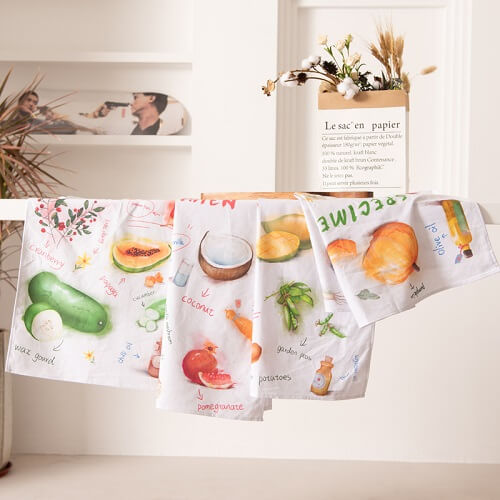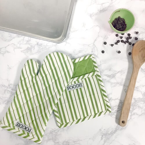 Tablecloths, table runners, placemats, napkins and napkin rings, rugs, runners, anti-fatigue mats, towels, chair pads, decorative storage, decorative bowls, aprons, pot holders, oven mitts.